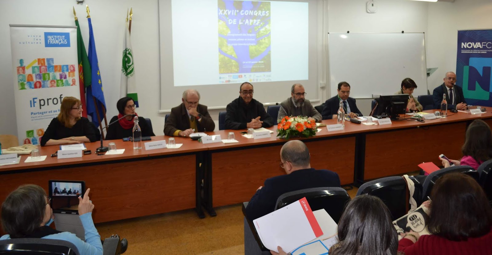 «(...) nous sommes heureux de compter sur la participation de collègues de tout le territoire national mais aussi de l'étranger. La présence de tous et de toutes nous honore et nous formulons le vœu que ce XXVIIe congrès national soit un moment marquant et qu'il contribue à redonner de l'élan à l'enseignement du français dans les écoles publiques et privées au Portugal et ailleurs.»